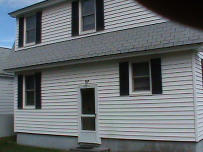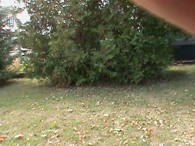 The living room window and the neighbor’s fence, on the right hand side of the yard.