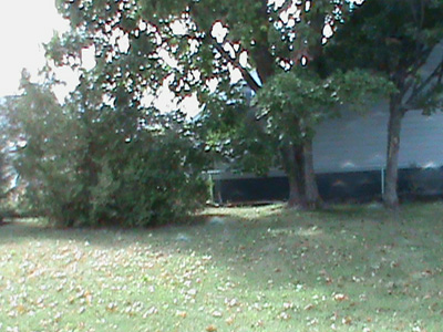The living room window and the neighbor’s fence, on the right hand side of the yard.