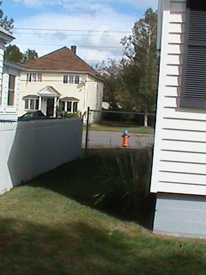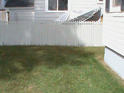 Fence between the property and a neighbor’s back yard on the right, facing the house.