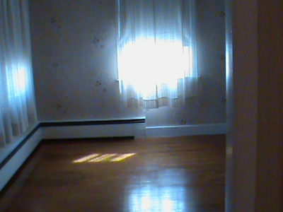 At the left side of this photograph is one of two windows facing the front of the house, which is east.